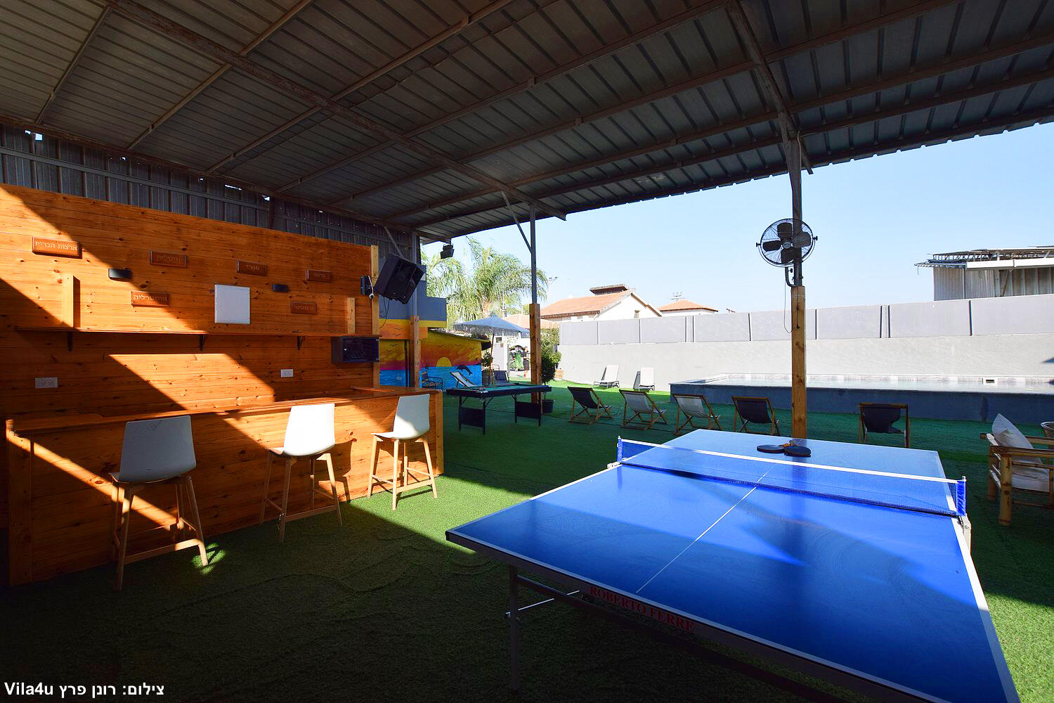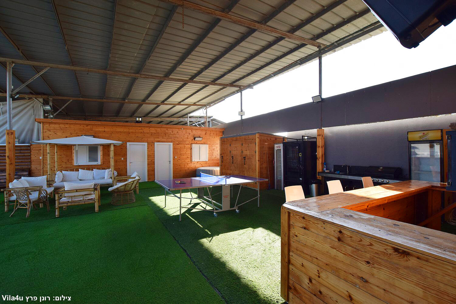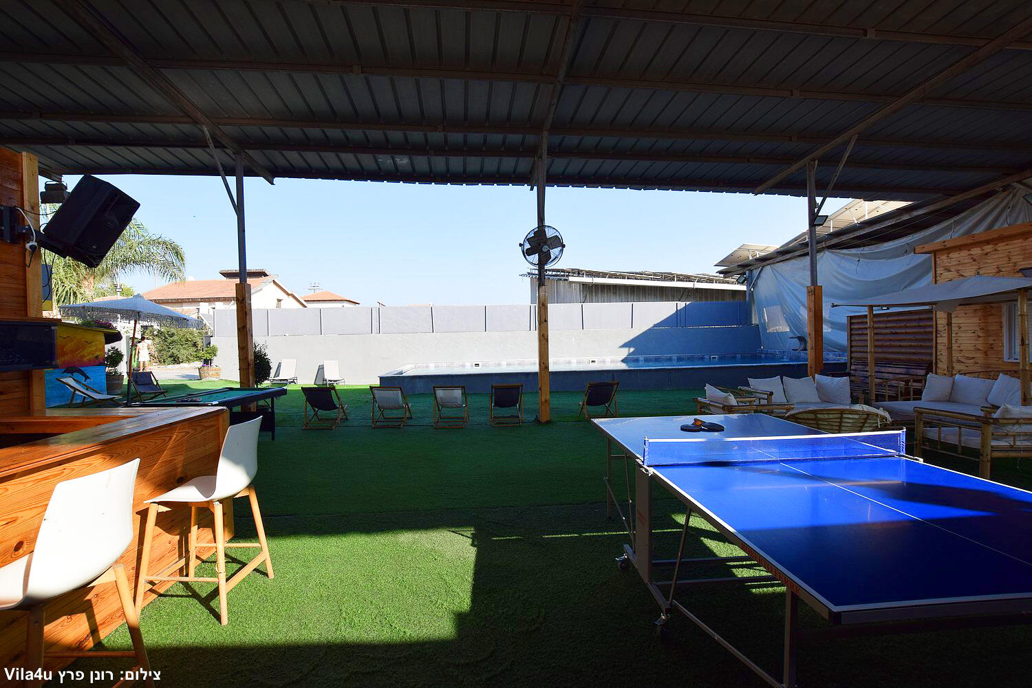 בריכת שחייה גדולה, 3 סוויטות ללינה, מערכות הגברה ותאורה, עמדת מנגל, שולחן פינג פונג ועוד.