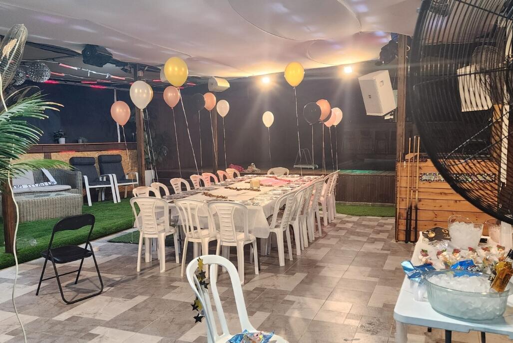 מתחם אירועים פרטי בלב המרכז, עם בריכה רחבה, ג'קוזי, עמדת דיג'יי, מערכות תאורה וסאונד מקצועיות.