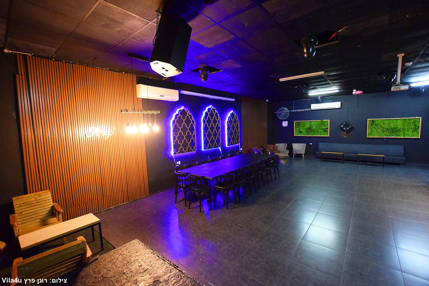 לשדרוג החוויה, המתחם מצויד במקרן איכותי, מערכת קריוקי ועמדת די ג'יי מקצועית. החלל המרשים שלנו ערוך לאירוח של עד 160 אורחים בנוחות מרבית, מה שהופך אותו למושלם עבור אירועים גדולים ומשמעותיים. כל פרט במתחם תוכנן בקפידה כדי להעניק לכם ולאורחים שלכם חוויה בלתי נשכחת.