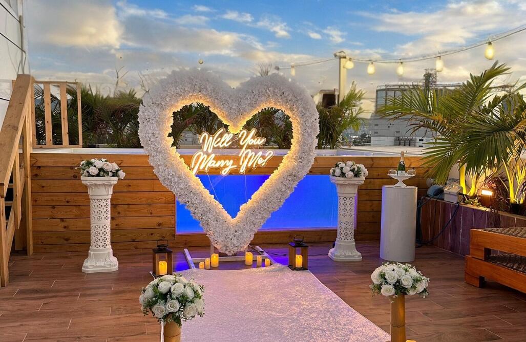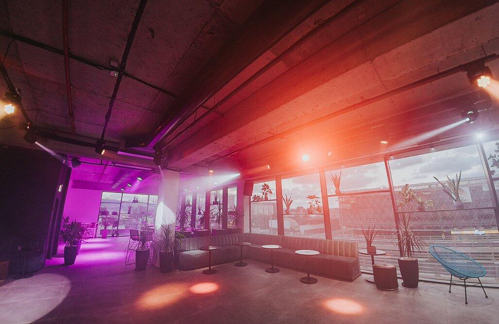 LE-MALA בחיפה מציע שני מתחמי אירועים ייחודיים המשלימים זה את זה. מתחם הגג, המיועד לעד 100 אורחים (גילאי 22 ומעלה), מתהדר בבריכת שחייה שקופה ומחוממת עם סגירת חורף. המרחב כולל פינות ישיבה מעוצבות על הבר, אזורי שיזוף מפנקים ועמדת מנגל מקצועית. לנוחות האורחים, קיים חדר התרעננות ייעודי.