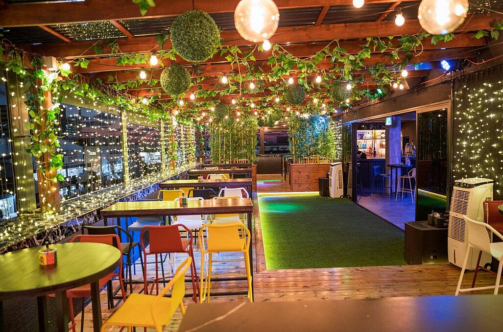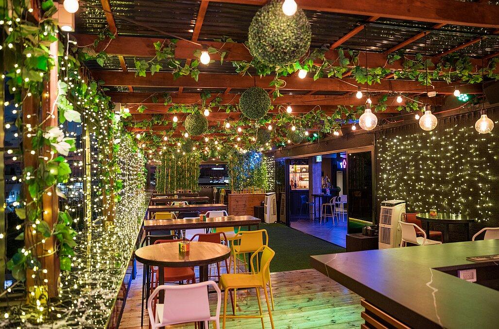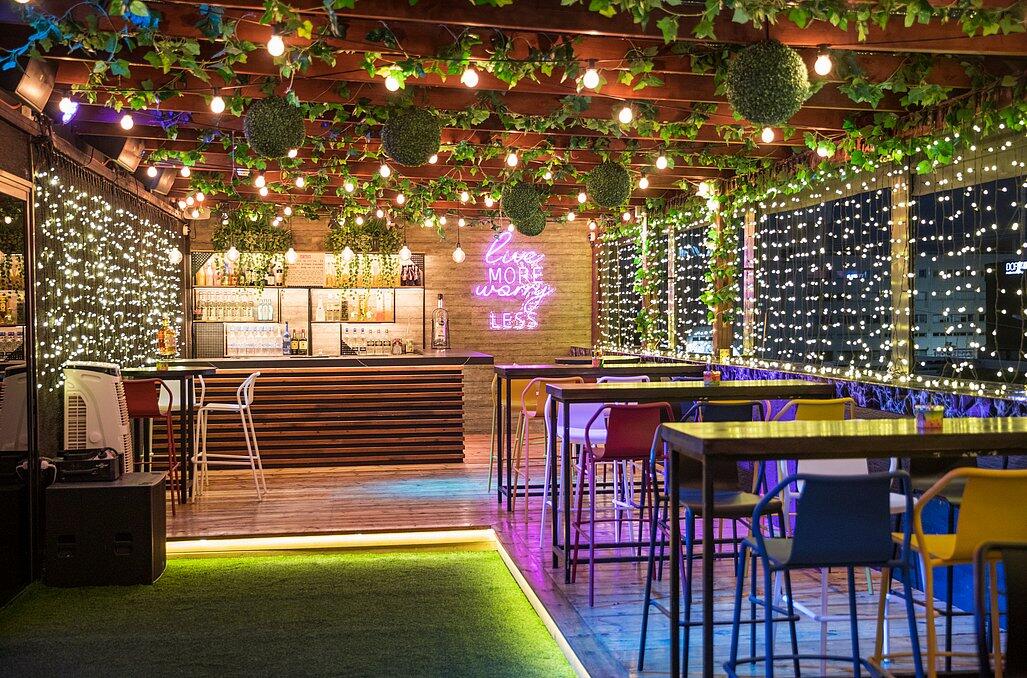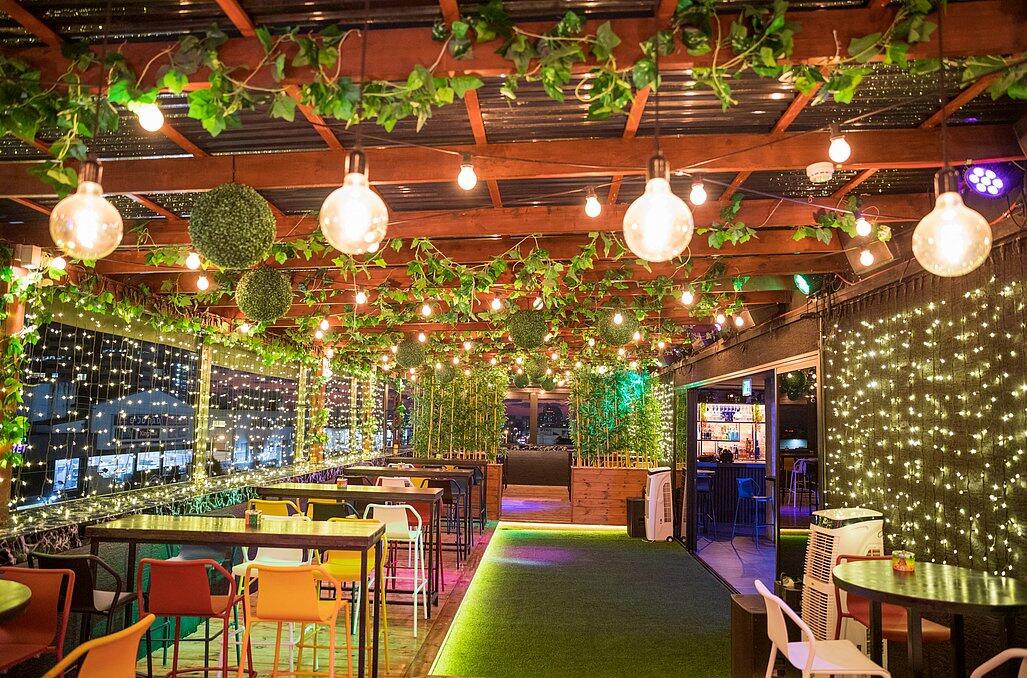 כשהשמש שוקעת והאורות נדלקים, הנוף הפנורמי המרהיב יוצר תפאורה קסומה לאירוע שלכם. המתחם משלב אלמנטים אורבניים עם עיצוב יוקרתי, כשברקע העיר הנוצצת מתעוררת לחיים.