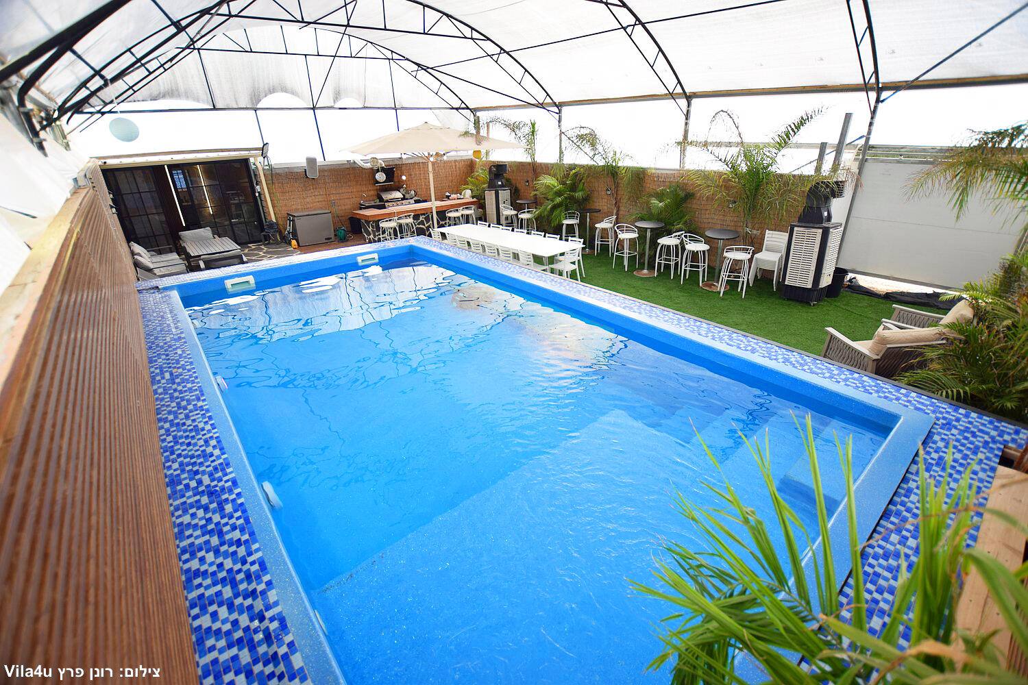 המתחם כולל בריכה צלולה, מדשאות ירוקות, מטבח חוץ מאובזר, פינות ישיבה ותאורה לילית קסומה.
