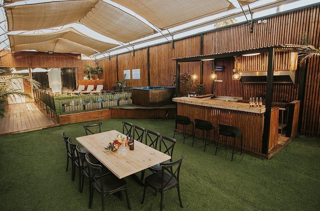 המתחם כולל בריכת שחייה מרהיבה, ג'קוזי ענק ומדשאות ירוקות. העיצוב המוקפד של הבית והחצר יוצר אווירה ייחודית שתרצו לתעד בכל רגע. מיועד לאירוח עד 100 איש.