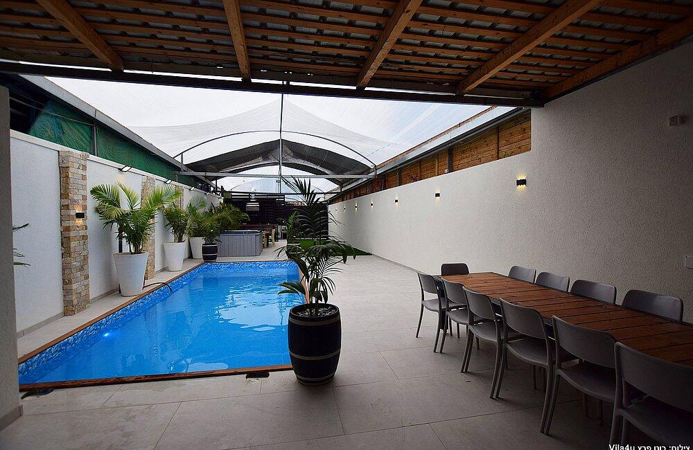 4.השימוש בבריכה ובמתקנים הנלווים הינו באחריות המתרחצים בלבד; אין מציל והאורחים מתחייבים להישמע לתדרוך והוראות בעלי הצימר.